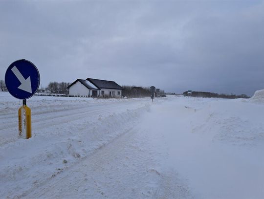 Na odcinku drogi nr 203 doszło do czasowego zablokowania ruchu po tym, jak pług odśnieżający zakopał się w zaspie śnieżnej.