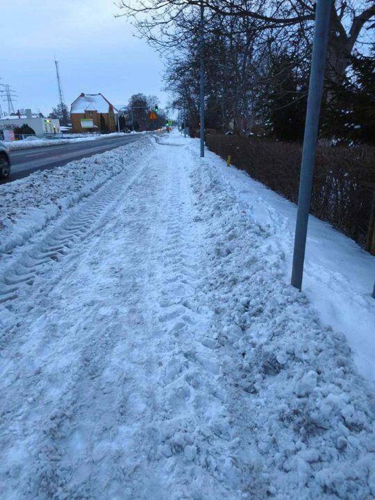 "Od samego początku jak zaczął padać śnieg, to droga i chodnik zostały całkowicie zapomniane o odśnieżaniu. Jak udostępniono S6 do ruchu, to nasza droga "stara 6" i chodnik jakby przestał istnieć na mapie Sławna. Tym chodnikiem idą ludzie do pracy czy po zakupy i dzieci do szkół, a matka z wózkiem już nie ma szansy tędy przejść.
