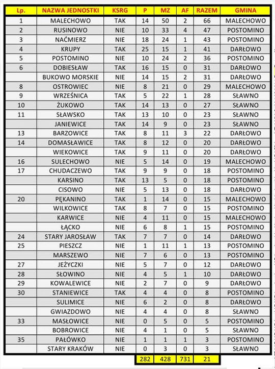 Serwis remiza.pl opublikował szczegółowe zestawienie wyjazdów jednostek Ochotniczych Straży Pożarnych z powiatu sławieńskiego oraz Jednostki Ratowniczo‑Gaśniczej ze Sławna, w tym posterunku w Darłowie, za rok 2025.