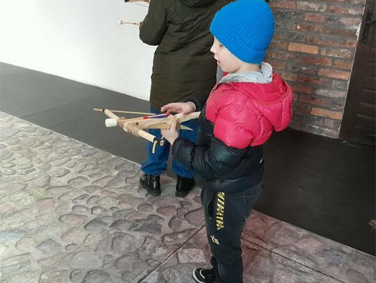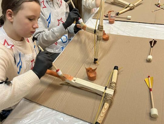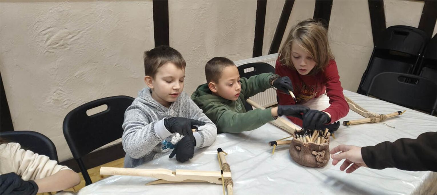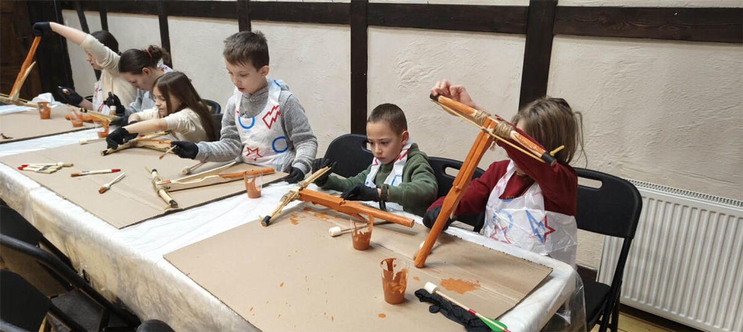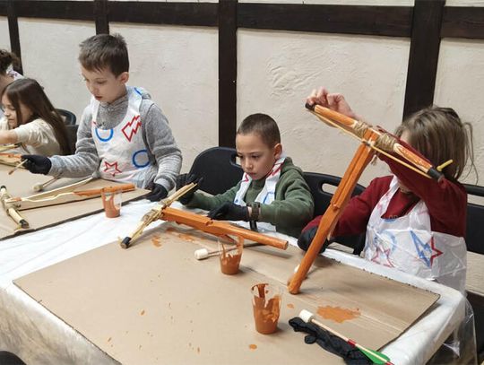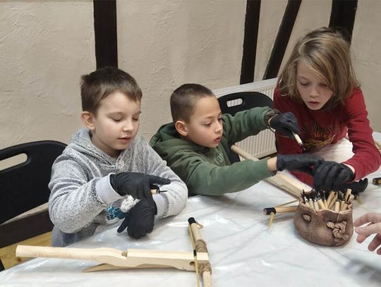 Dzieci rozpoczęły ferie od warsztatów „Od cięciwy do celu – rzemiosło broni dawnej”, podczas których poznały krótką historię kuszy, jej budowę oraz zastosowanie w średniowieczu.