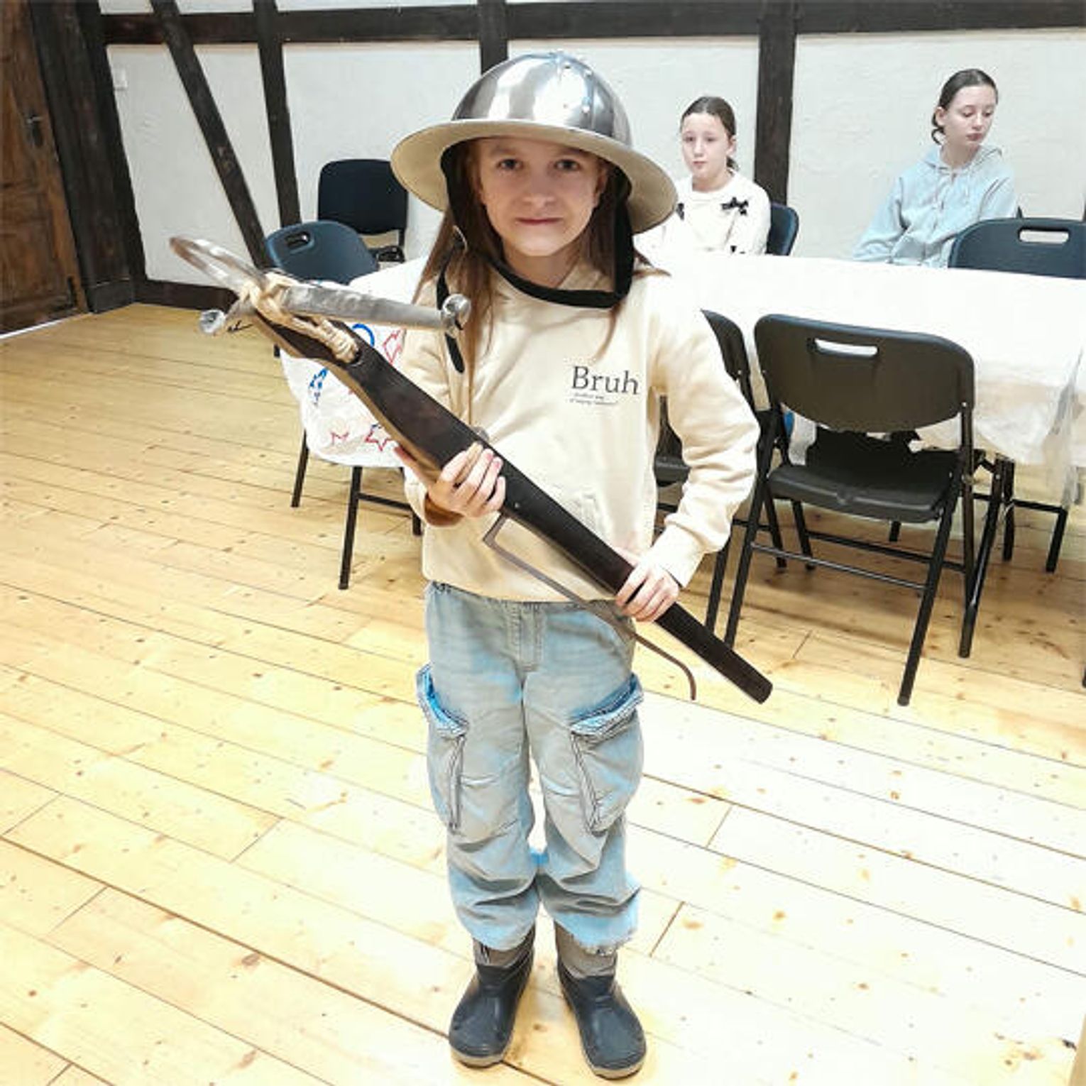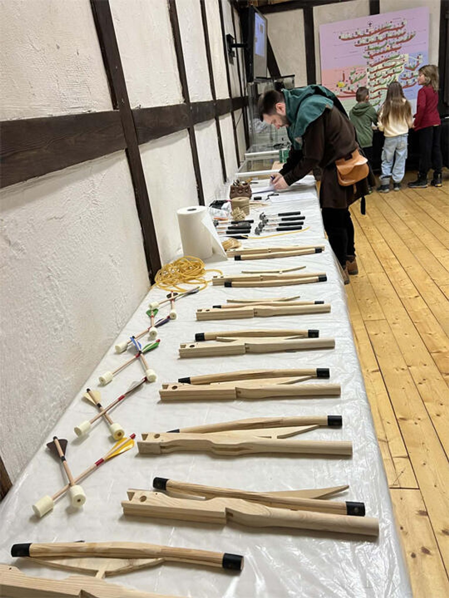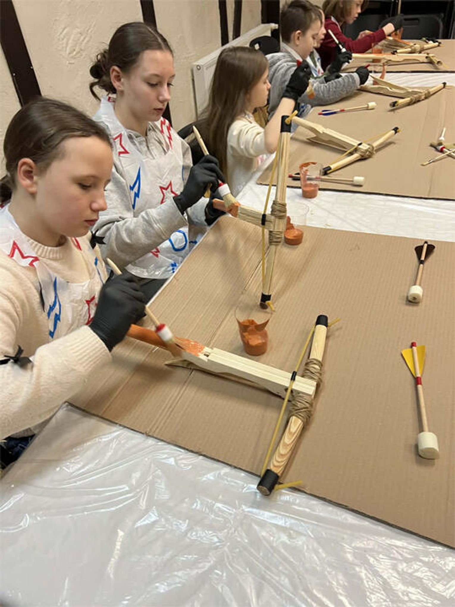 Dzieci rozpoczęły ferie od warsztatów „Od cięciwy do celu – rzemiosło broni dawnej”, podczas których poznały krótką historię kuszy, jej budowę oraz zastosowanie w średniowieczu.