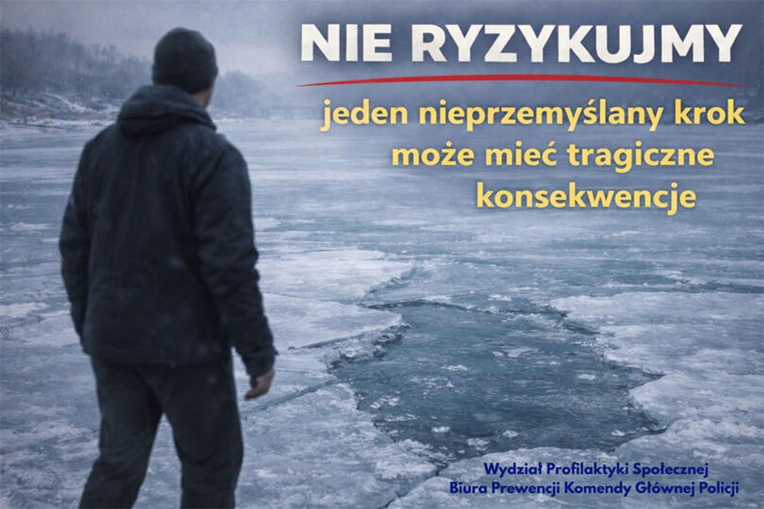 Policja, Państwowa Straż Pożarna oraz służby ratownicze apelują o rozwagę i przypominają, że wejście na lód zawsze wiąże się z ryzykiem utraty zdrowia lub życia ![]()