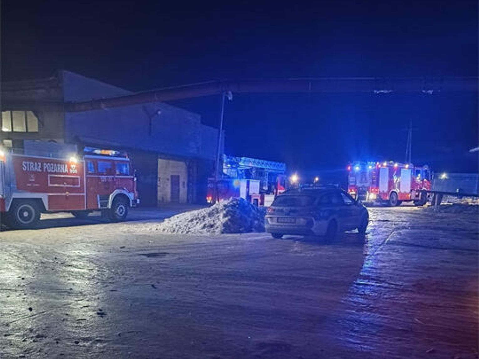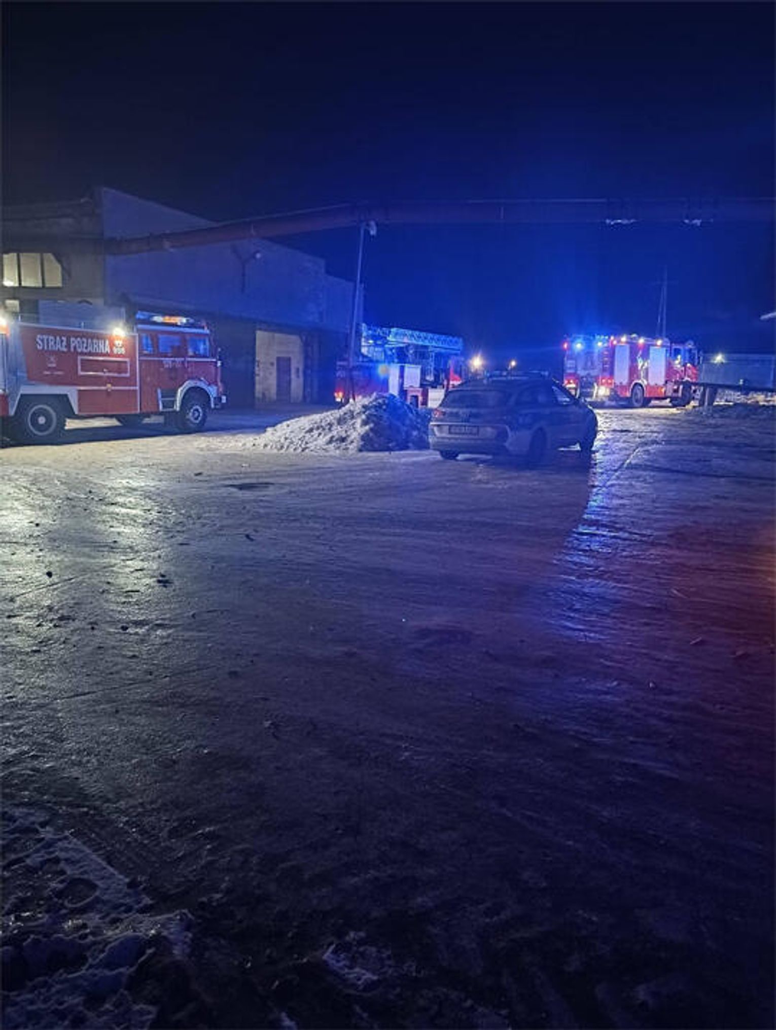 Na miejscu interweniowały jednostki Państwowej Straży Pożarnej z Sławna oraz ochotnicze straże pożarne z okolicznych miejscowości. Kpt. Mariusz Sieciński z Komendy Powiatowej PSP w Sławnie relacjonuje, że strażacy zastali bardzo duże zadymienie, które pochodziło z jednej z hal produkcyjnych.