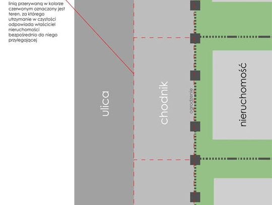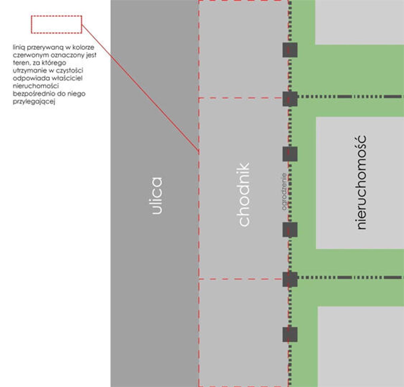 Właściciele nieruchomości zobowiązani są do uprzątnięcia błota, śniegu, lodu i innych zanieczyszczeń z chodników położonych wzdłuż nieruchomości bezpośrednio do niej przylegającej.