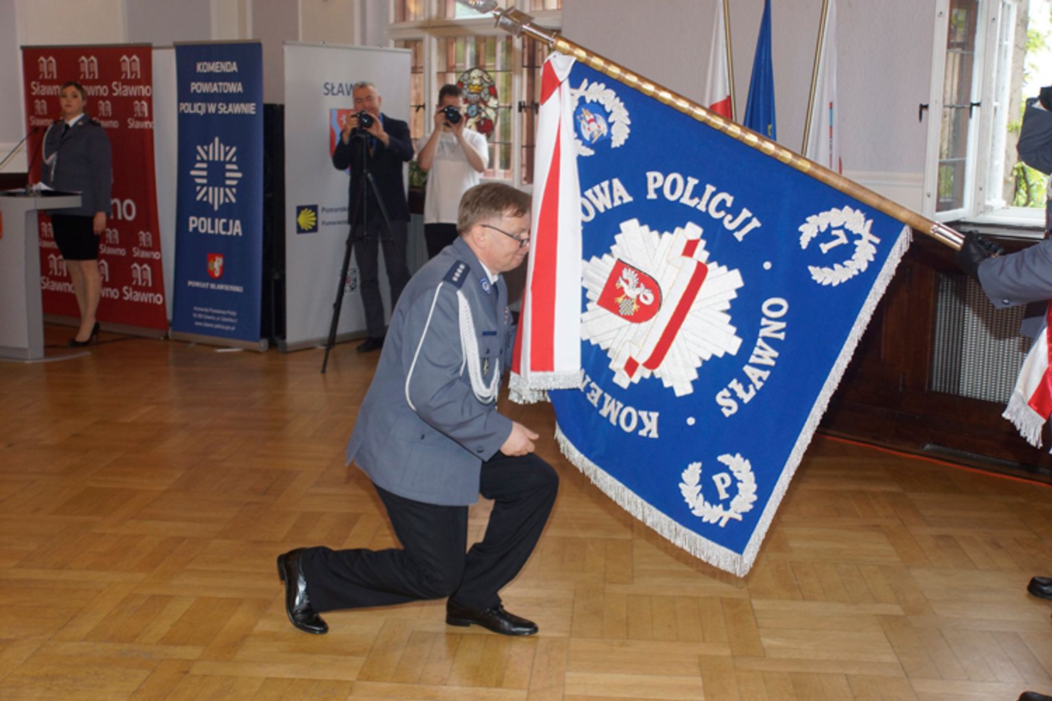 W czwartek, w obecności najbliższej rodziny, a także nadinspektora Jacka Cegieły – Komendanta Zachodniopomorskiej Policji, komendantów powiatowych, władz samorządowych oraz wielu zaproszonych gości, ze sztandarem Komendy Powiatowej Policji, oficjalnie przywitał się nadkomisarz Andrzej Kamoda – komendant KPP w Sławnie.