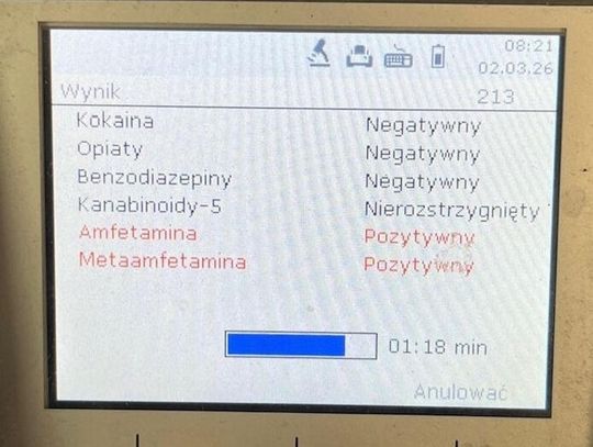 W Kwasowie policjanci z Wydziału Ruchu Drogowego zatrzymali do kontroli drogowej 38 - latka, który kierował Mercedesem Sprinter. Mundurowi w rozmowie z mężczyzną zwrócili uwagę na zachowanie mężczyzny i jego spowolnioną mowę. Wstępne badanie narkotesterem wykazało, że kierujący jest pod wpływem amfetaminy. Pobrano więc mu krew do badań, a do tego podczas przeszukania mundurowi znaleźli przy nim zawiniątko, w których znajdował się proszek koloru białego. Jak się okazało była to amfetamina w ilości ponad 6 gramów.