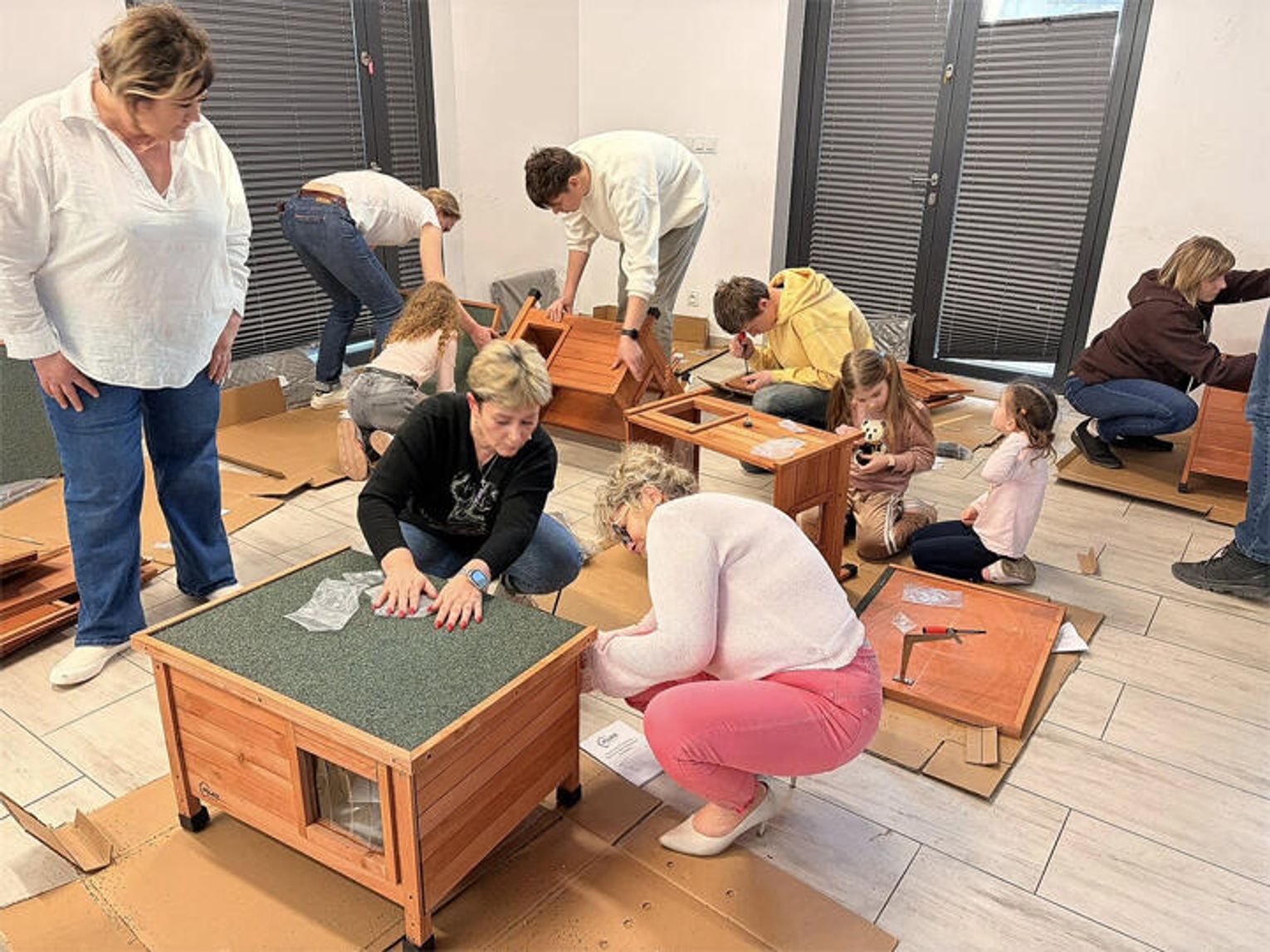 Spotkanie miało charakter praktyczny i integrujący — jego głównym celem było stworzenie bezpiecznych, przytulnych schronień, które pomogą kotom przetrwać chłodniejsze dni.