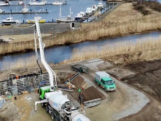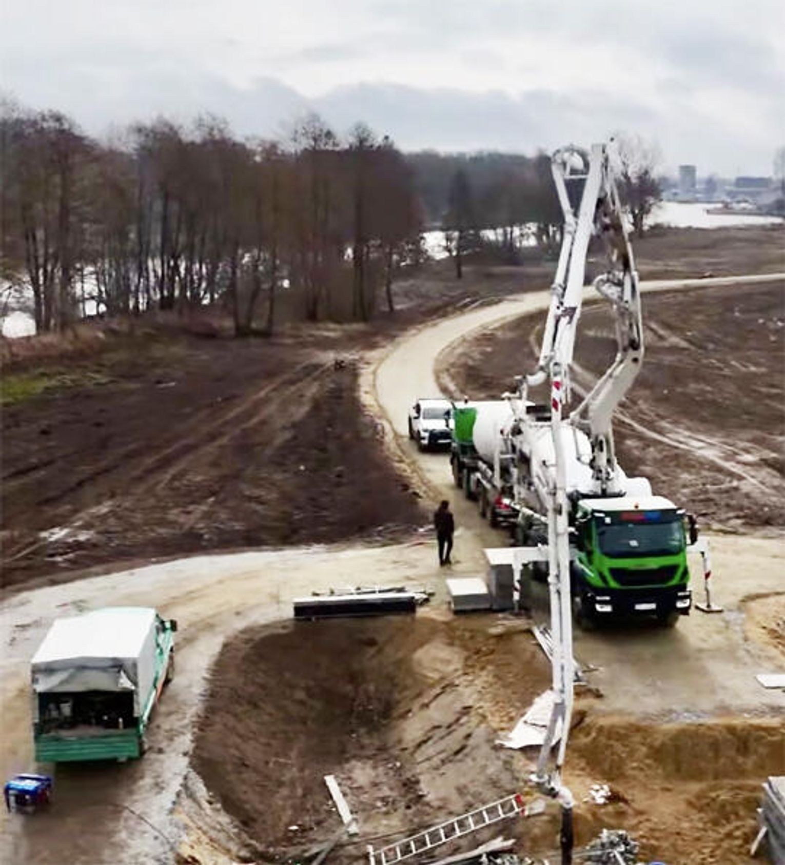 Lokalna firma Zdzich‑Bud, odpowiada za dostarczenie betonu pod konstrukcję mostu.