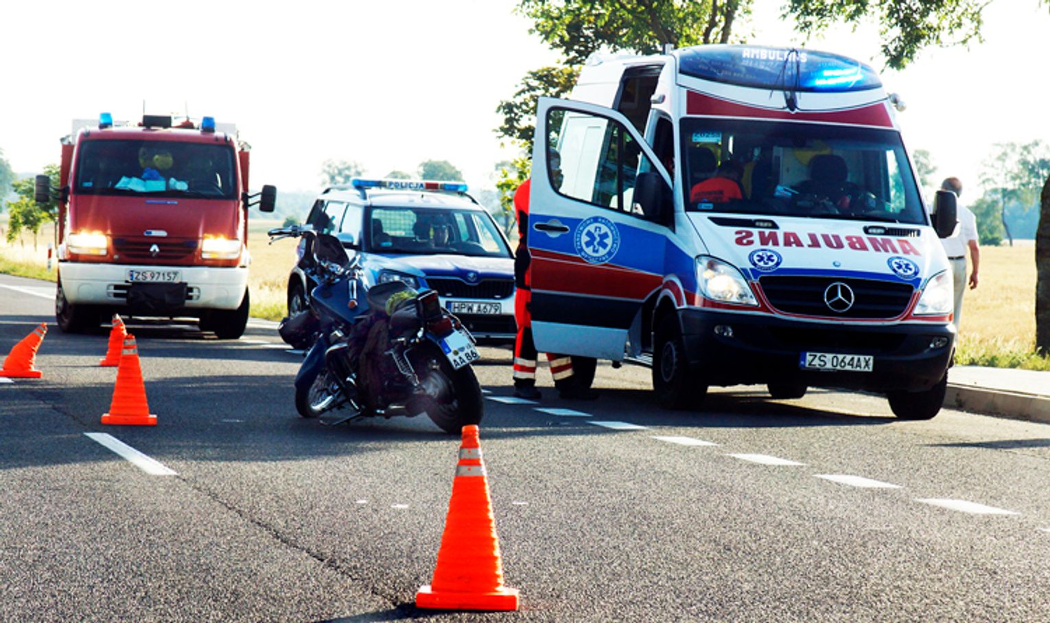 Przejazd „6” został utrudniony na kilkadziesiąt minut. Strażacy JRG ze Sławna zorganizowali ruch wahadłowy. Motocyklistę opatrzyli ratownicy medyczni. Trafił do szpitala. Kierowcy Pandy nic poważne nie stało się.