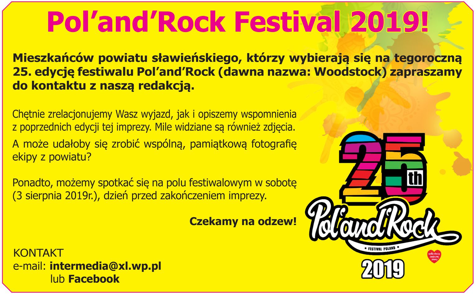 Mieszkańców powiatu sławieńskiego, którzy wybierają się na tegoroczną 25. edycję festiwalu Pol’and’Rock (dawna nazwa: Woodstock) zapraszamy do kontaktu z naszą redakcją.