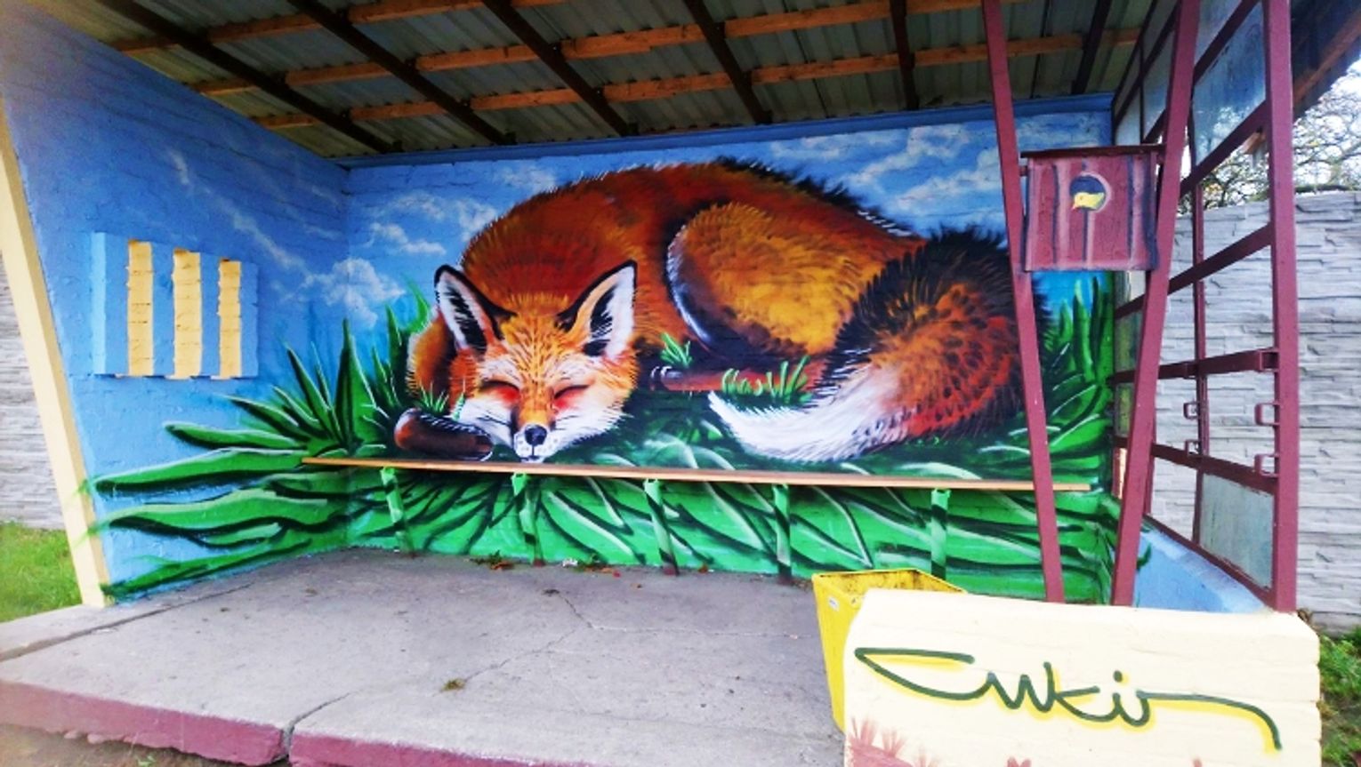 Autorem obu grafik jest Cukin Art z Koszalina, czyli po prostu Tomasz Cukin. Poza grafikami w Dobiesławiu, Cukin w powiecie sławieńskim zmalował też inne murale, m.in. w Wiciu (przy głównym zejściu na plażę) i Bobolicach (OSP). Mamy jednak nadzieję, że w naszych okolicach, tak artystycznych miejsc jest więcej, dlatego zachęcamy do dzielenia się zdjęciami, które można przesyłać na adres e-mail: [email protected]