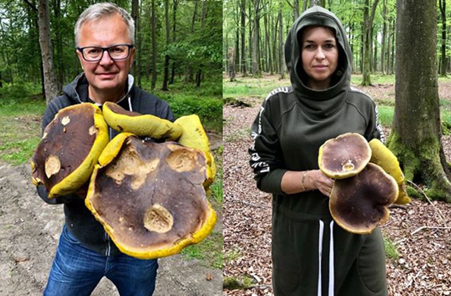Grzybobranie jest jak nałóg. Wciąga. Także burmistrza Darłowa i jego małżonkę. Dzisiaj podczas wędrówki po lasach gminy Darłowo, Joanna i Arkadiusz Klimowicz, znaleźli kilka prawdziwych olbrzymów. Zebrane przez nich wielkie prawdziwki wyglądają okazale. Ciekawe, czy są zdrowe?