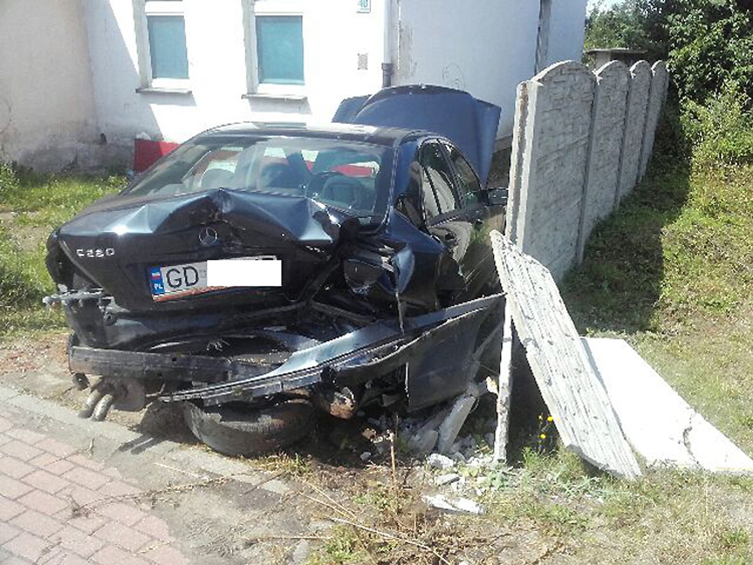 Nieszczęście mogło stać się już w minioną niedzielę, gdy pędzący ze zbyt dużą prędkością mercedes na gdańskich numerach nagle „zatańczył na drodze” zjechał na przeciwległy pas jezdni i zderzył się (a w zasadzie został popchnięty) z prawidłowo jadącym Citroenem (jechało w nim 6 osób, w tym 3 dzieci). W efekcie Mercedes przeleciał przez chodnik i wylądował w ogródku po drugiej stronie ulicy.
