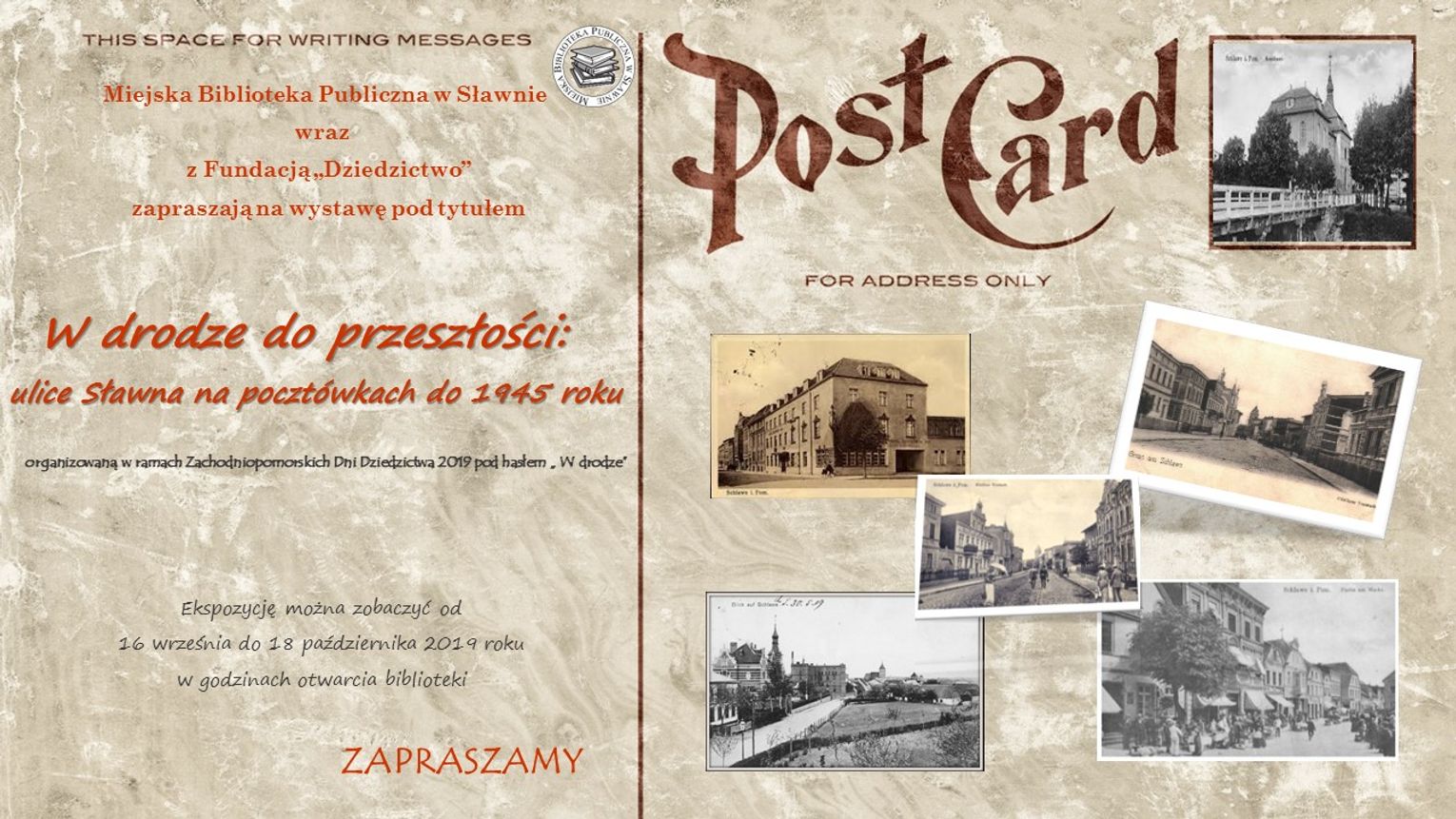 Ta wystawa zaprasza do odbycia drogi w czasie, do miasta, jego ulic i budynków sprzed wielu lat. Wystawa w Miejskiej Bibliotece Publicznej w Sławnie na Zachodniopomorskie Dni Dziedzictwa 2019 zorganizowana przez MBP i Fundację „Dziedzictwo”, wrzesień 2019 scenariusz wystawy: Jan Sroka