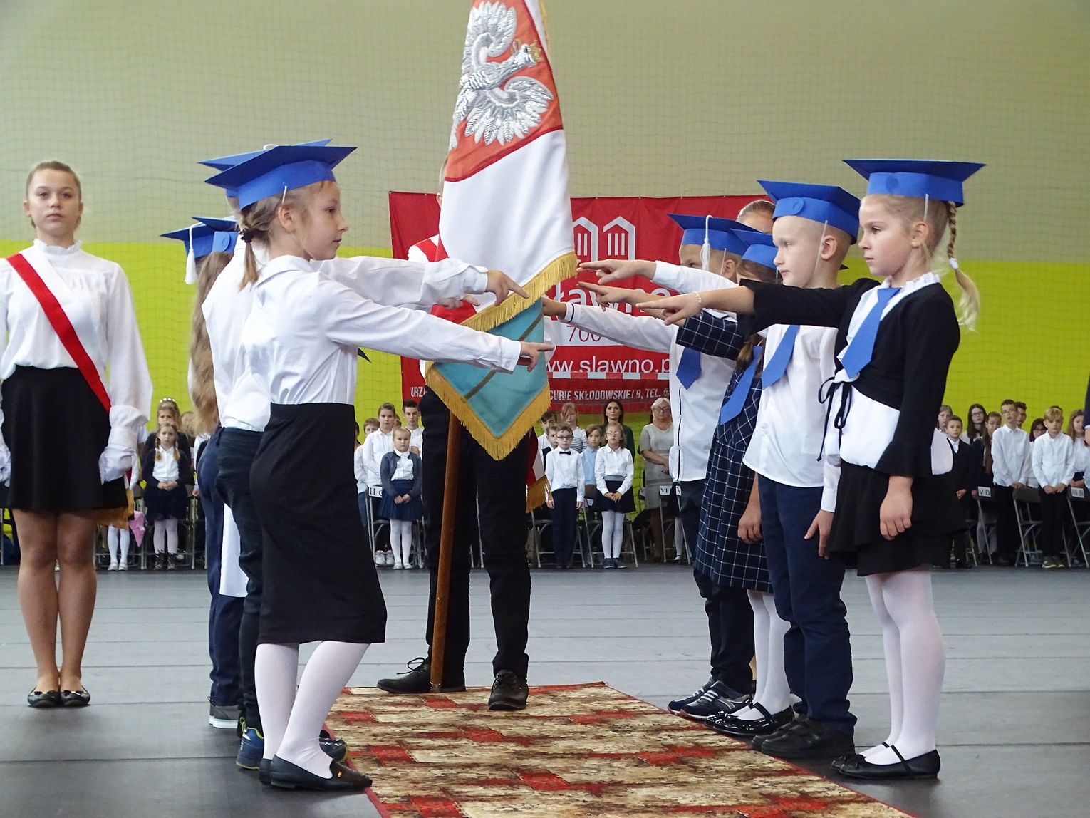 Najpierw uczniowie, przed sztandarem szkolnym, złożyli uroczyste ślubowanie. Następnie dyrektor szkoły Dagmara Wojtczak wraz z burmistrzem Krzysztofem Frankensteinem pasowali dzieci na pełnoprawnych uczniów placówki oświatowej. Później przyszła pora na przyjemności, czyli część artystyczną, w której społeczność szkolna wraz z bohaterami tego ważnego dnia, odegrała krótkie scenki powitalne i zaprezentowała układ taneczny. Najmłodszym uczniom - pierwszoklasistom - życzymy samych sukcesów w nauce, spełnienia wszystkich marzeń i mnóstwa samych dobrych wspomnień związanych ze szkołą.