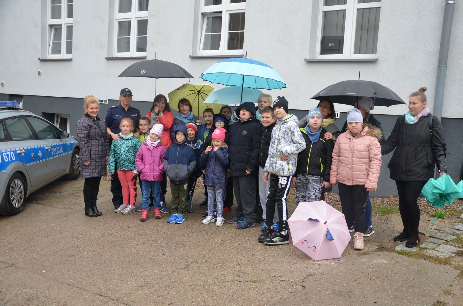 W miniony wtorek, 8 października, klasy I-IIISPu, wspólnie z wychowawczyniami i pedagogiem odwiedziły Komendę Powiatową Policji w Sławnie. Celem wycieczki było poznanie pracy policjanta. Na miejscu uczniów przywitała asp. Kinga Warczak, która opowiedziała o swojej pracy. Funkcjonariuszka przypomniała o zasadach bezpieczeństwa w różnych sytuacjach życiowych. Utrwalone zostały także numery alarmowe na policję: 997 i 112. Następnie uczniowie zobaczyli i przymierzali sprzęt, który wykorzystują w swojej pracy policjanci: kamizelki policyjne, chełm, ochraniacze na ręce, tarczę ochronną, pałkę policyjną. Mieli okazję zobaczyć areszt dla zatrzymanych, oraz dyżurkę. Punktem kulminacyjnym było oczywiście „siedzenie za kierownicą” w samochodzie policyjnym. Każdy mógł zrobić pamiątkowe zdjęcie w radiowozie i poczuć się jak prawdziwy policjant na patrolu. Spotkanie z policjantką wzbogaciło wiedzę dzieci na temat tego trudnego i zaszczytnego zawodu.