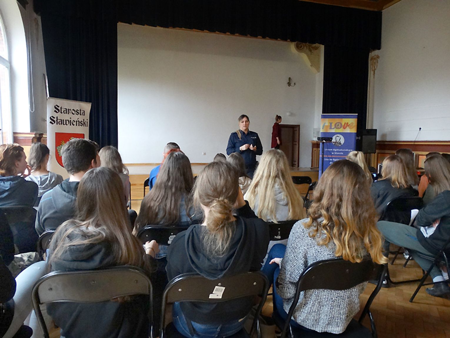 Prowadzący je policjanci z KPP w Sławnie, starali się uświadomić młodym ludziom czym jest handel ludźmi i jak się ustrzec, aby nie zostać ofiarą tego przestępstwa.
