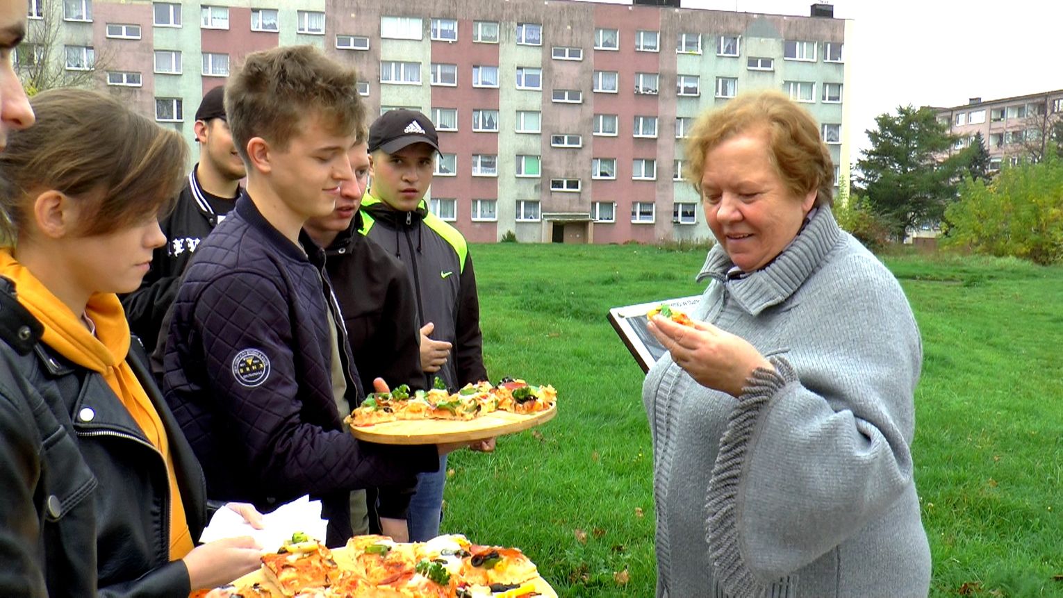Następnie wraz z opiekunem mentorem Zenony Glanc zaprosili na warsztaty pięciu uczniów z Technikum Żywienia Agro w Sławnie. Celem tych zajęć było wspólne przygotowanie pizzy i nauka języka migowego słyszących kolegów. W przerwie uczniowie pod opieką nauczycieli prowadzących warsztaty I. Pestki i M. Lis wyszli do miasta, by poczęstować mieszkańców swoimi wyrobami.