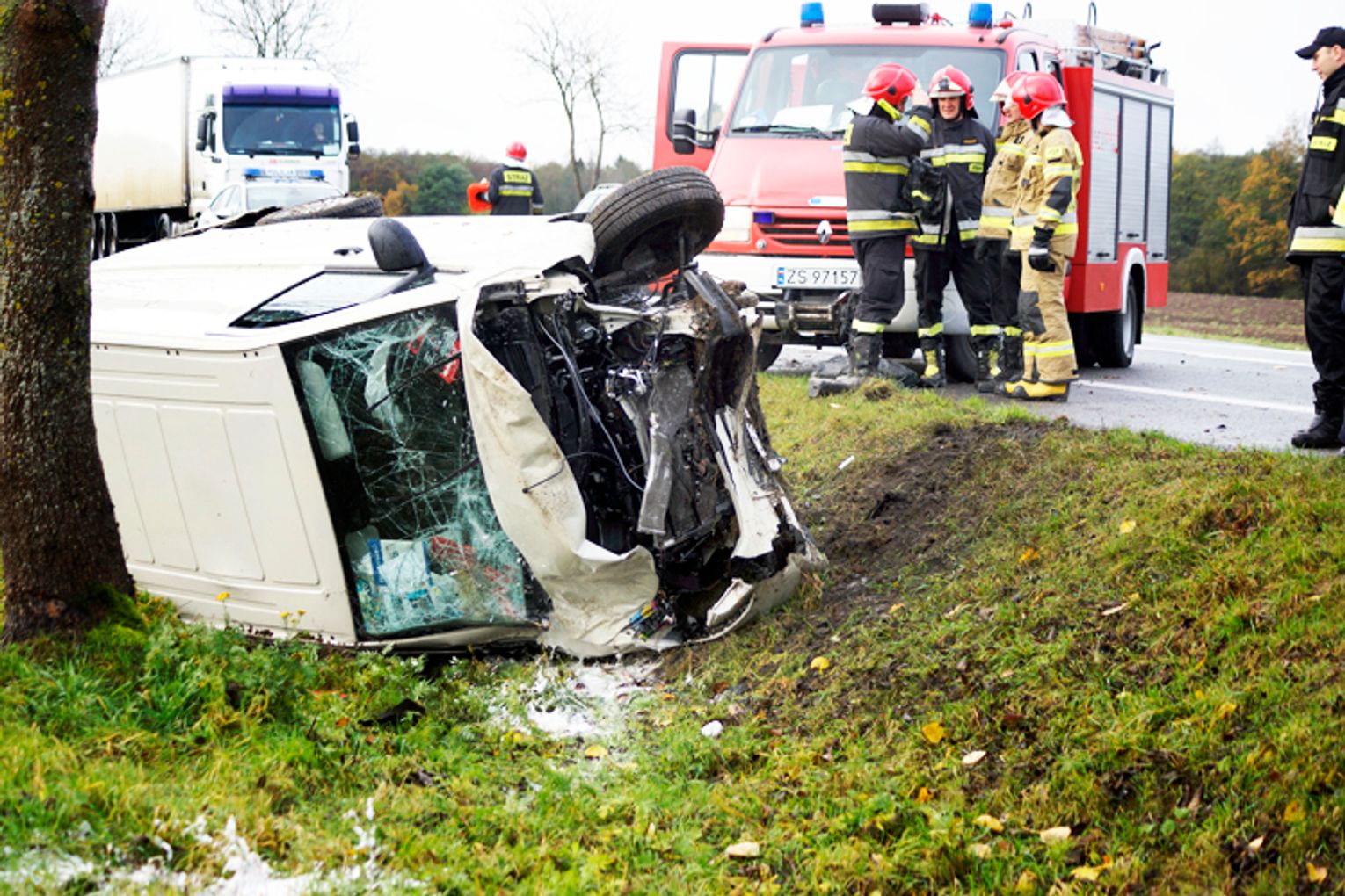 Według świadków zdarzenia, kierowca widocznego na zdjęciu Volkswagena – Transportera na gdańskich numerach, pędził w stronę Słupska. Na łuku drogi za Noskowem, z ogromną prędkością, wyprzedzał kilka pojazdów. W ostatniej chwili zauważył nadjeżdżający z naprzeciwka samochód. Gwałtownie skręcił kierownicą i zjechał na pobocze. Prędkość musiała być bardzo duża skoro, po kilkudziesięciu metrach jazdy poboczem, „przeleciał” nad przepustem, uderzył w drzewo i dachował.