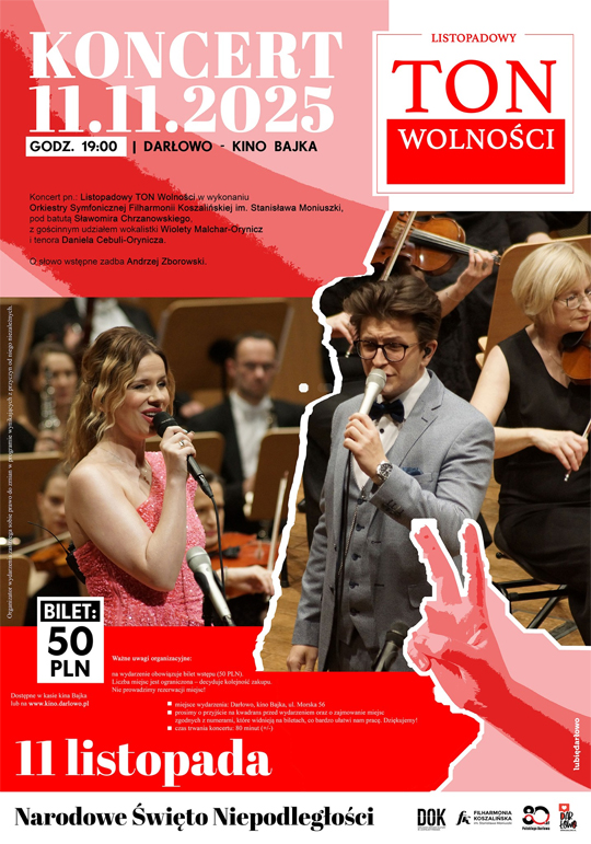 19:00 - Listopadowy Ton Wolności – koncert w wykonaniu Orkiestry Symfonicznej Filharmonii Koszalińskiej